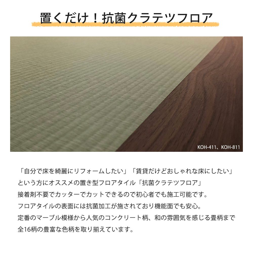 他の画像を見る NAGATA 抗菌クラテツフロア KOH-WOOD マーブルシリーズ 500×500mm 8枚(2.0㎡)/ケース 送料無料 メーカー希望小売価格 ¥ 17,820 のところ ¥ 17,820 税込 詳細を見る お気に入りに登録する