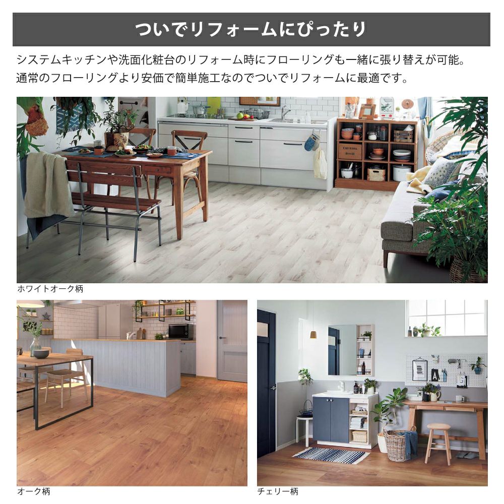 他の画像を見る 1.5mm厚の上貼りリフォーム用床材 パナソニック XKERSJP ウスイータ わんにゃんSmile 滑り配慮仕様(集合住宅用) 防音直貼床材向け 耐熱タイプ + 専用接着剤セット USUI-TA 1.5mm厚 リフォームフローリング 1ケース24枚入(3.3㎡) KE76JS 送料無料 メーカー希望小売価格 ¥ 54,890 のところ ¥ 35,134 税込 カートに入れる お気に入りに登録する