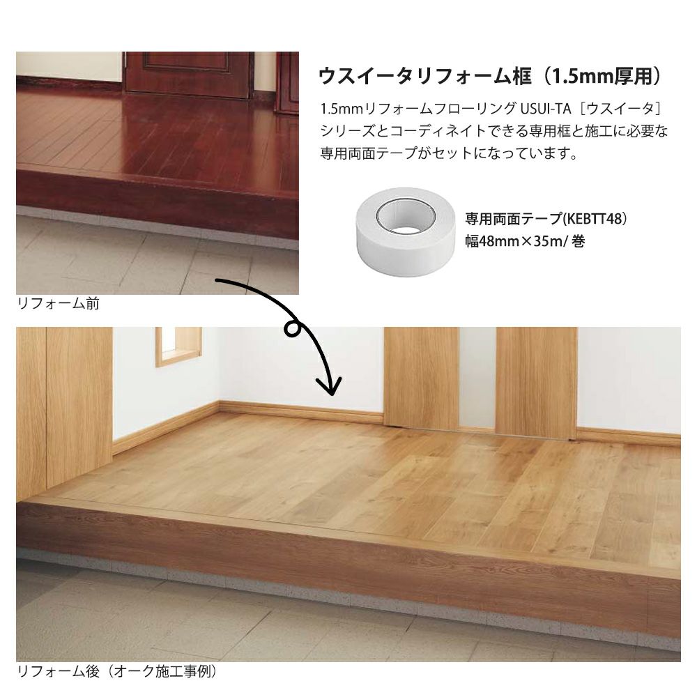 他の画像を見る 1.5mm厚の上貼りリフォーム用框 パナソニック XKHT821 ウスイータ リフォーム框 + 専用両面テープセット USUI-TA 1.5mm厚 6尺 1本 KEBTT48 送料無料 メーカー希望小売価格 ¥ 14,410 のところ ¥ 12,771 税込 カートに入れる お気に入りに登録する