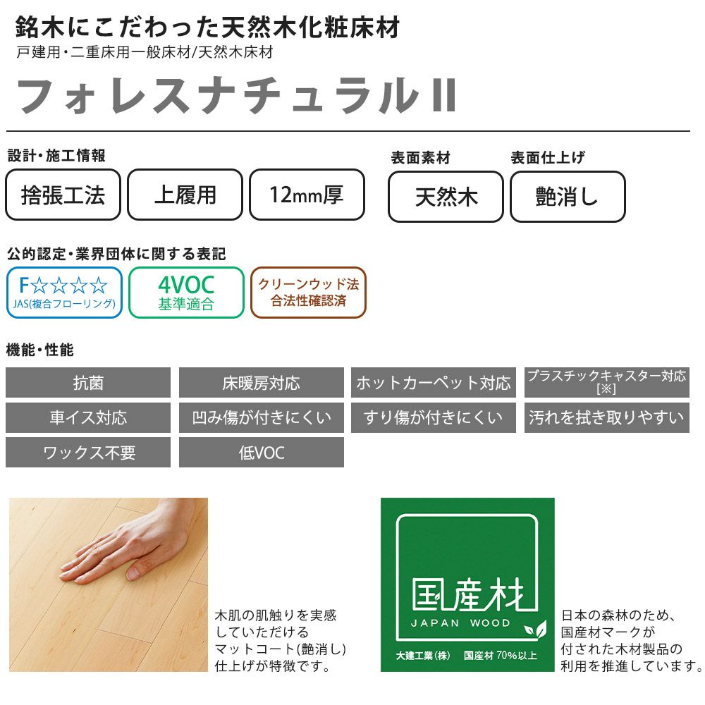 他の画像を見る 大建工業 フォレスナチュラルⅡ 2Pタイプ 6枚(3.3㎡)/梱 抗菌 床暖房対応 戸建用・二重床用一般床材 YF66 DAIKEN NEW 送料無料 メーカー希望小売価格 ¥ 41,470 のところ ¥ 19,745 税込 詳細を見る お気に入りに登録する
