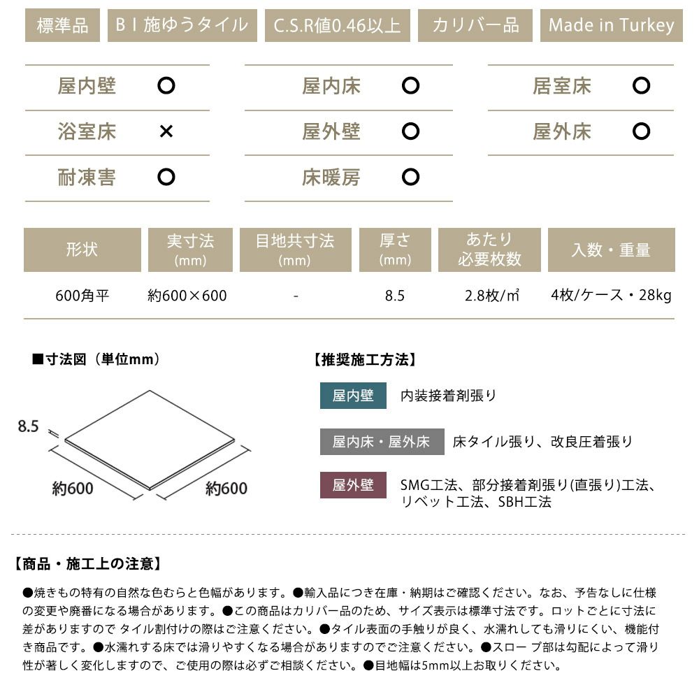 他の画像を見る スワンタイル ヴェイル 300角平 14枚入/ケース 600×300角平 7枚入/ケース (旧)600角平 3枚入/ケース ¥ 6,490 税込 〜 ¥ 税込 詳細を見る お気に入りに登録する