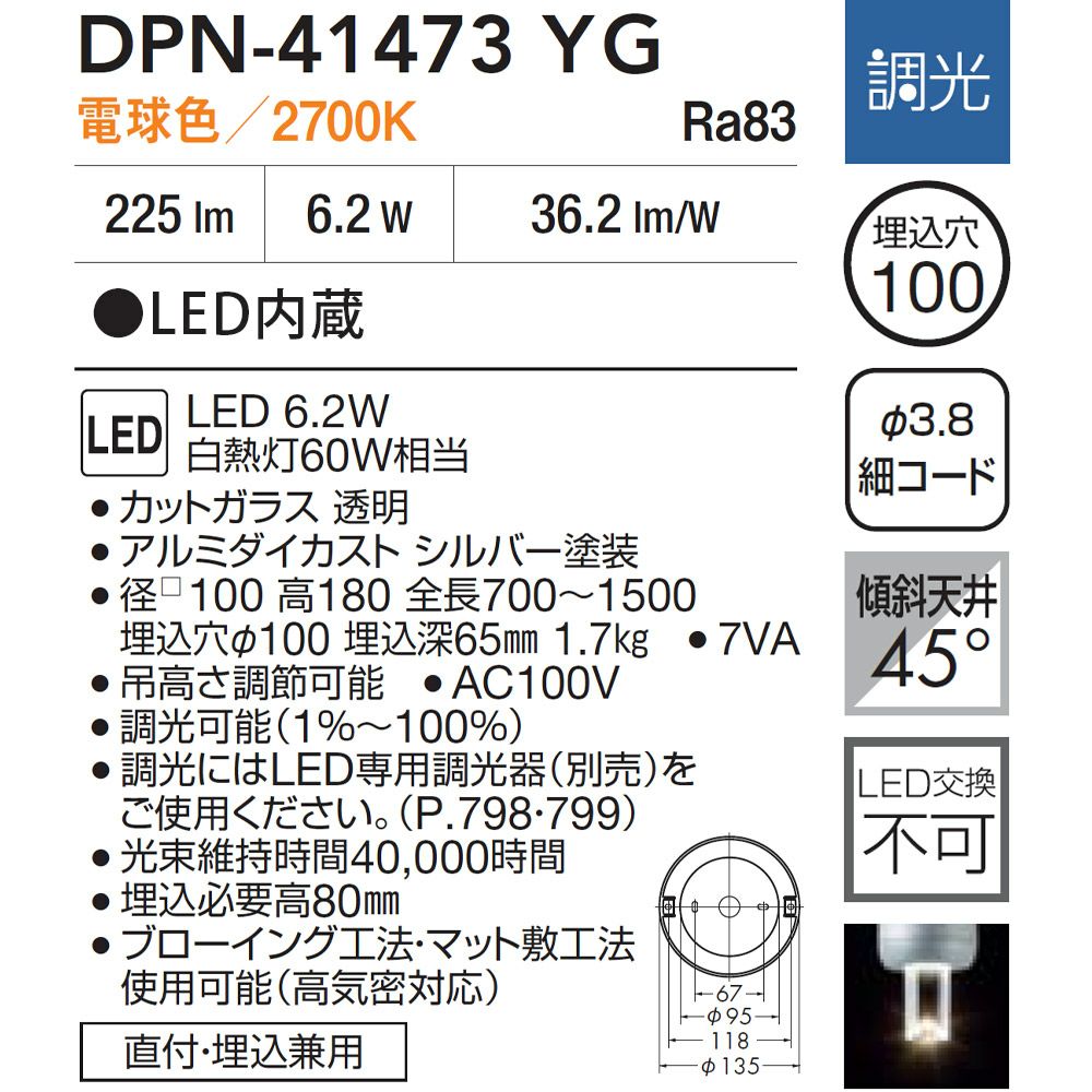 他の画像を見る DAIKO ペンダントライト DPN-41473YG フランジタイプ 直付・埋込兼用 電球色 調光 LED内蔵 メーカー希望小売価格 ¥ 41,250 のところ ¥ 22,374 税込 詳細を見る お気に入りに登録する
