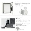 ※「受取可能最大サイズ」とは、宅配ボックスで受取・取出が可能な最大寸法です。最大サイズを超える荷物の受取はできません。目安寸法につき、梱包の状態によっては受け取れない場合もございます。 ※扉は85°までしか開かない構造となっています。85°以上開くよう力を加えると破損する恐れがありますので、過剰な力を加えないでください。 ※幅木を使用して床面設置した場合でも、背面を必ず固定してください。 ※雨水が侵入しても荷物が濡れにくい防滴構造を採用しております。防水構造ではありませんので、強風雨や諸条件によっては荷物が濡れることがあります。 ※ポスト(KS-MB36F)と併せて設置する場合、ポストへ郵便物の投函ができなくなるため、ポスト投入口側に設置しないでください。 |