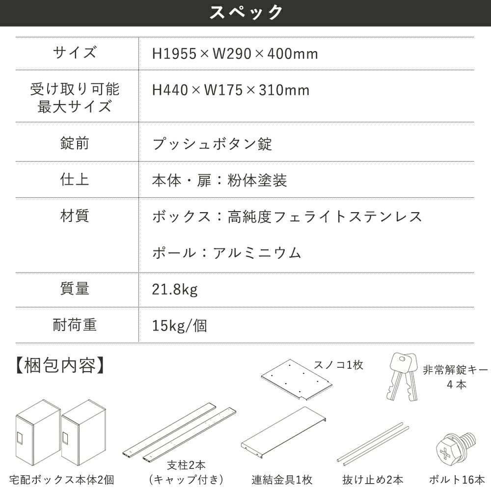他の画像を見る ナスタ KS-GP12AKT-T24 宅配ボックス 本体2台ポール付きセット 送料無料 メーカー希望小売価格 ¥ 216,700 のところ ¥ 150,293 税込 詳細を見る お気に入りに登録する