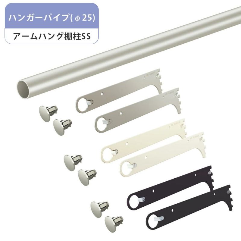 南海プライウッド アームハング棚柱SS ハンガーパイプ(φ25) 幅620/920/1220 SSシルバー SSホワイト SSブラック SS-HPW