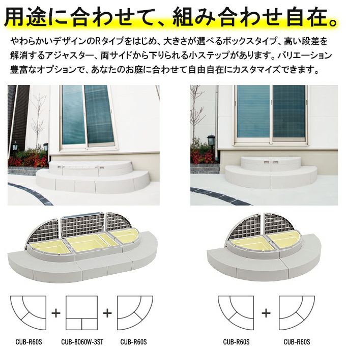 他の画像を見る 新築やリフォームで用いる玄関や勝手口、掃き出し窓などの段差と収納スペースを解消するエクステリア製品 城東テクノ ハウスステップ CUB-R60 Rタイプ 900×900×350mm メーカー希望小売価格 ¥ 54,615 のところ ¥ 43,890 税込 カートに入れる お気に入りに登録する