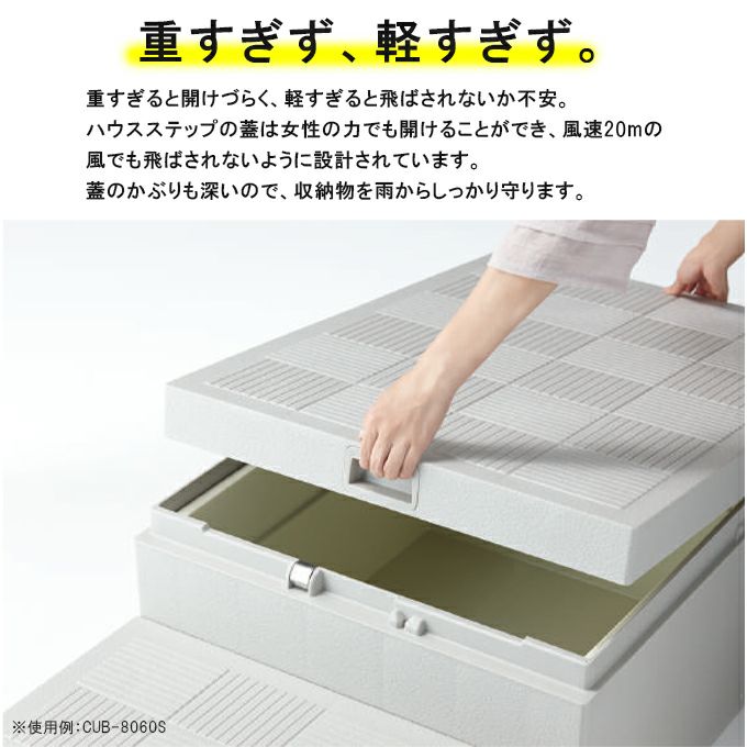 他の画像を見る 新築やリフォームで用いる玄関や勝手口、掃き出し窓などの段差と収納スペースを解消するエクステリア製品 城東テクノ ハウスステップ CUB-8060W-3S Rタイプ 収納庫付き 900×800×350mm 送料無料 メーカー希望小売価格 ¥ 68,365 のところ ¥ 45,430 税込 カートに入れる お気に入りに登録する
