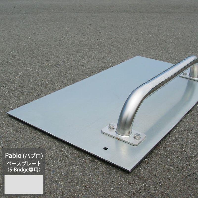 コンクリート以外の床面、アスファルト・インターロッキングなどの上に置くだけの『Pablo SUS』専用ベースプレート。